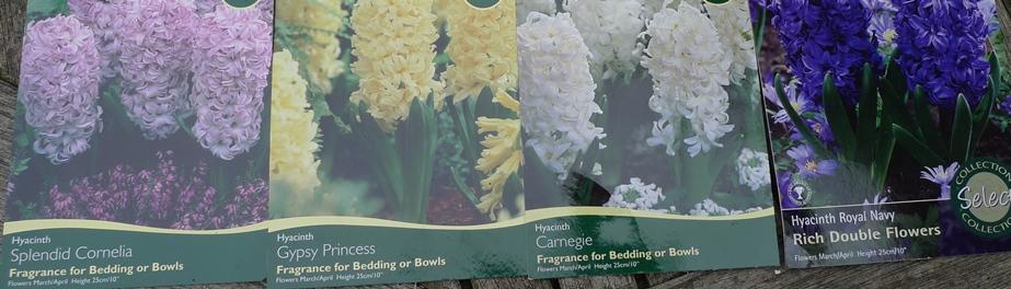 Beginning of September 2014, the local garden centre has just 5 varieties of prepared hyacinth bulbs:
