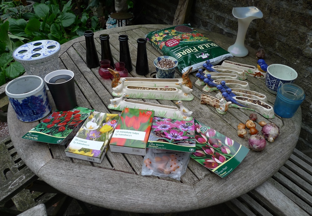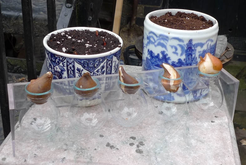 Now the hyacinths and crocus in vases are in the cellar, I can think about sorting out the other bulbs for forcing.