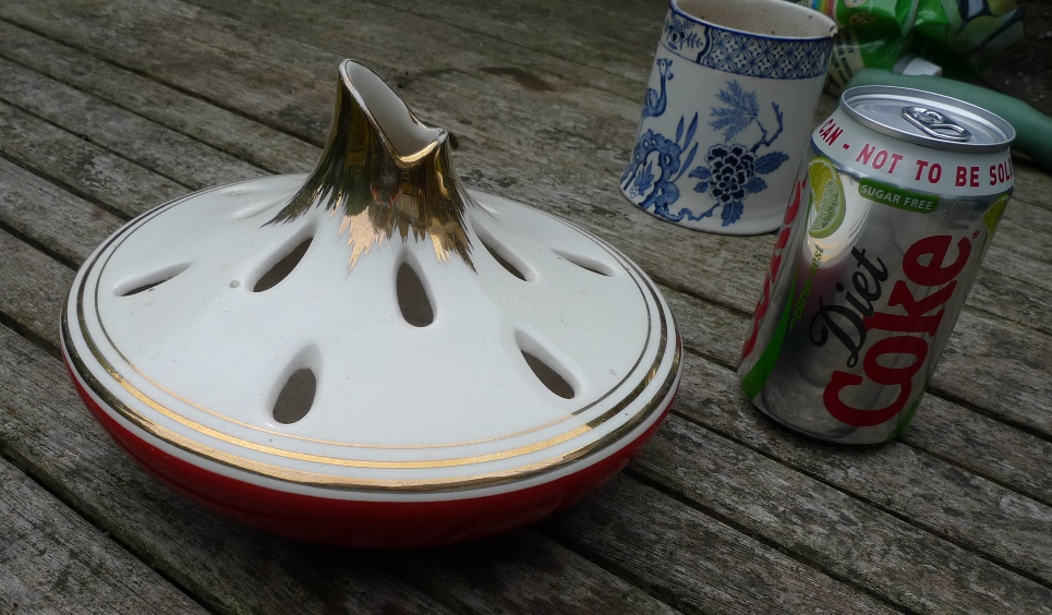 This bulb pot is improvised with a bulb pot lid bought on ebay and a chipped vase I found in the cellar when we moved into this house. It can be difficult to fit 5 hyacinth bulbs on the top but these Ann Mary just about do it. Some proper bulb pots below.