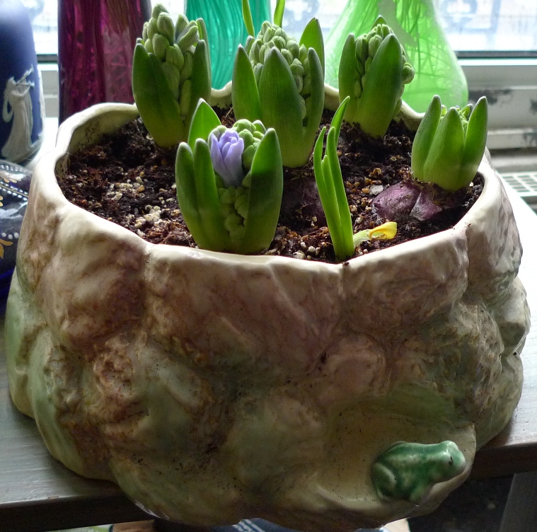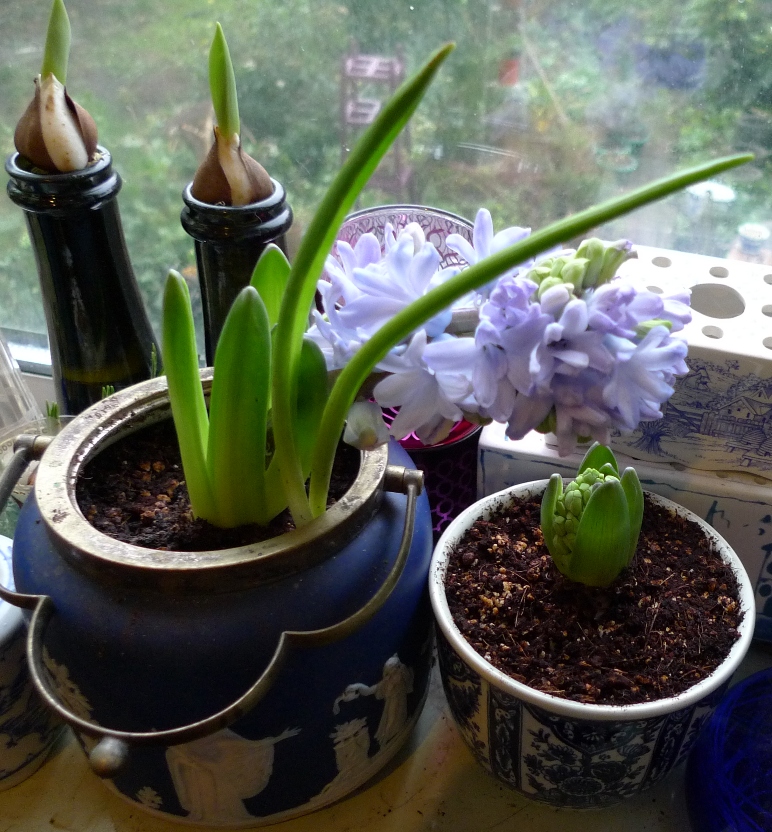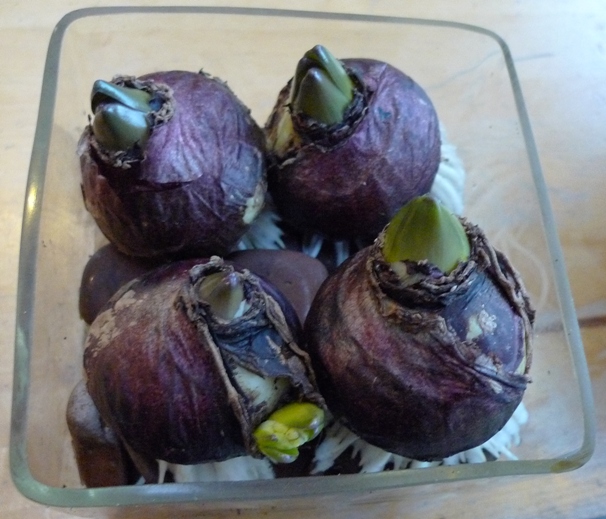 My City of Haarlem hyacinths, probably as much as they're going to bloom. Why do I try this variety over and over again? It never works, much as I hope. Why do the suppliers bother to prepare them? They never work!