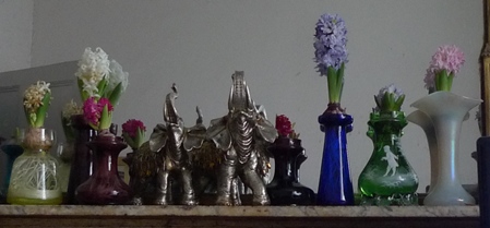The usual wilting before opening properly, two examples on the mantel below to the right and left of the elephants. I don't think I'll do these again.