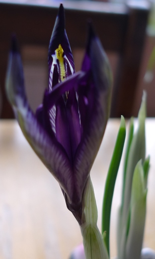 I only had a few iris in bloom but I only bought 15 of each of iris reticulata Pauline and one just labelled dwarf. I love purple flowers so it's difficult to give up on these but, like the daffodils, the iris that were outdoors did better than the ones inside.