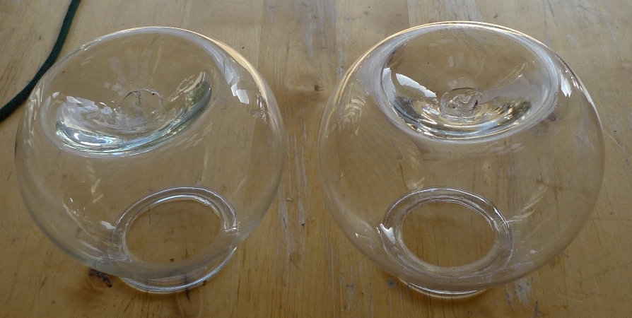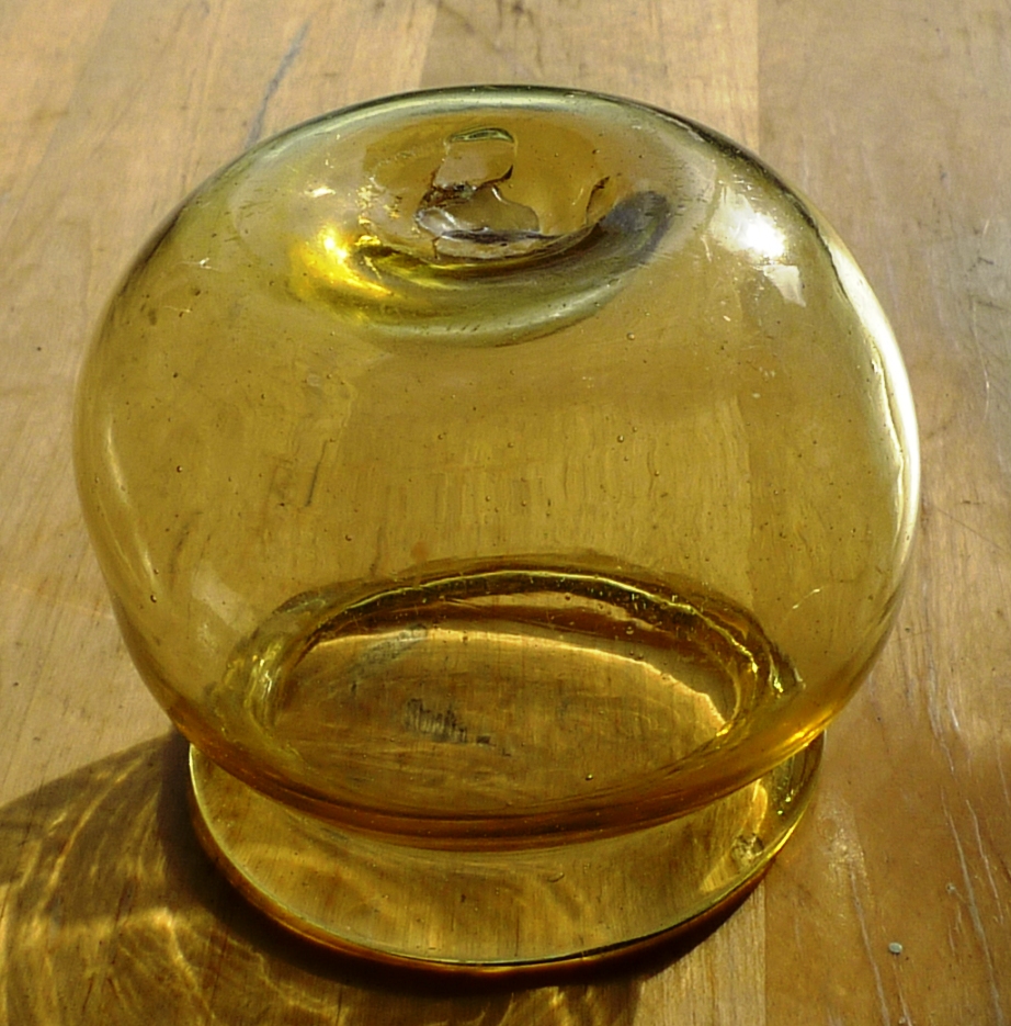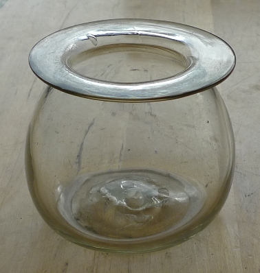 I bought some clear pots recently which pose more questions. They have larger openings and are slightly shorter, are they leech pots as well? The larger openings would certainly make fishing a leech out easier. They still have flat rims to tie a cover on but have the fancier ribbing and they have well-polished pontils showing some quality. Even though the pic is a little dark it shows the front row of clear pots are shorter.