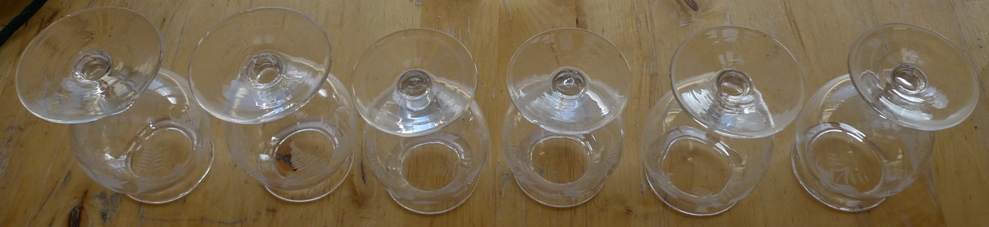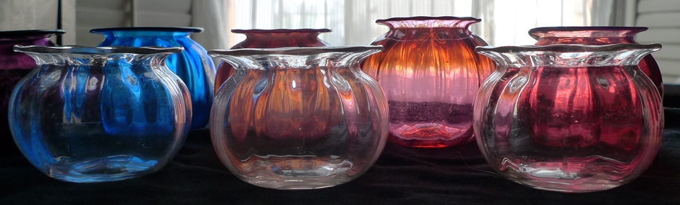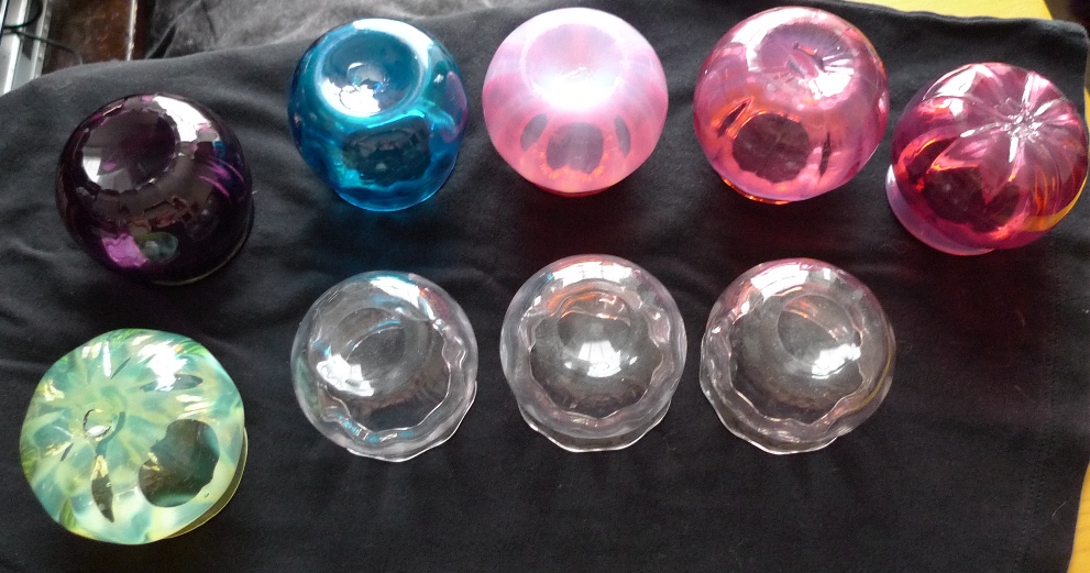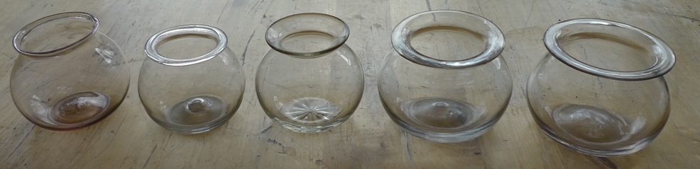 These are all hand-blown with snapped off pontil marks, except the one on the far left whose pontil mark has been polished.