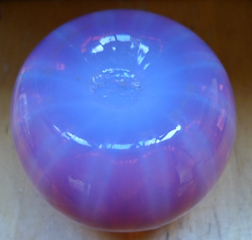 Purple leech pot showing that distinctive flat rim of glass leech pots.