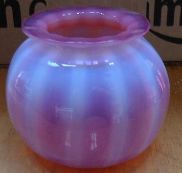 These small pots are the same size as the classic leech pots but have a "fancier" feel, eg ribbing and better colours. (Now that I am processing them on my pc I see the photos are much too dark.) Better ones will be added shortly. Are they posies rather than leech pots? What would such a small posy really be useful for? What flowers would really work in them? If they are posies, why the flat rim? If everyone knew these were leech pots, which I suggest at one time they did, could they be used for something else? I suggest not. I'm reminded of the Exploratorium science museum toilet drinking fountain. It challenges! No one wants to drink from a fountain shaped like a toilet. No one would want to put any foodstuffs or flowers in a leech pot.