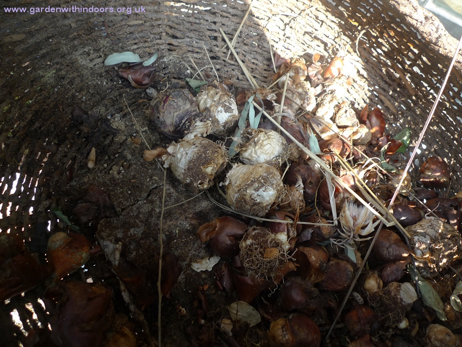 Most of the tulips were eaten by mice in the cellar but the bulbs survived in this little pot as it had a lid on (think it's a tobacco jar) but they've been infected with aphids. It got so bad I banished the pot outside.