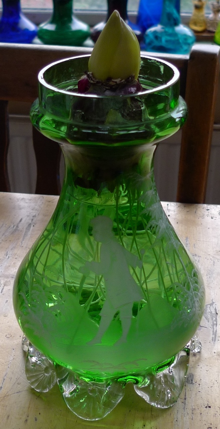 as well as that green vase that has a rotting bulb, the Prattware vase below right also has a bulb that is not big enough and it is falling into the water and rotting
