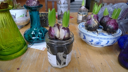None of the mail order bulbs is large enough to fit in some of these very wide mouth vases without possibly sinking in - bulbs do seem to shrink a bit as they grow. Back to the bins of bulbs from the garden centre! at least for the few vases needing large bulbs which I will now mark as such on my spreadsheet.