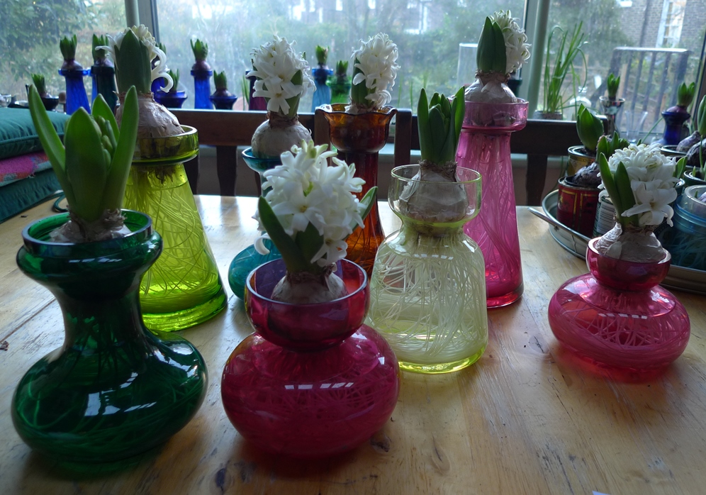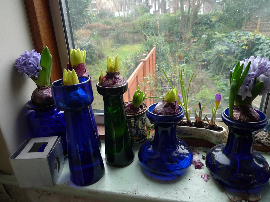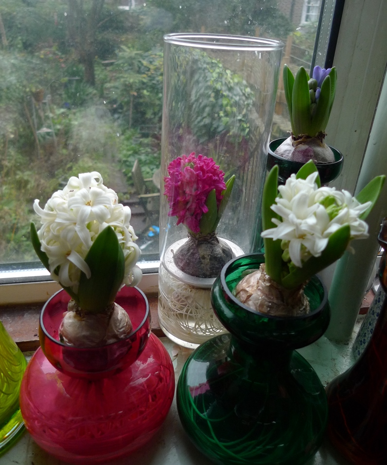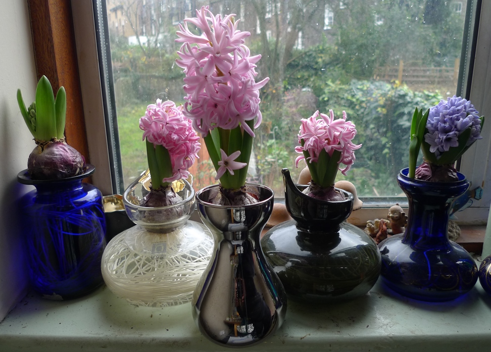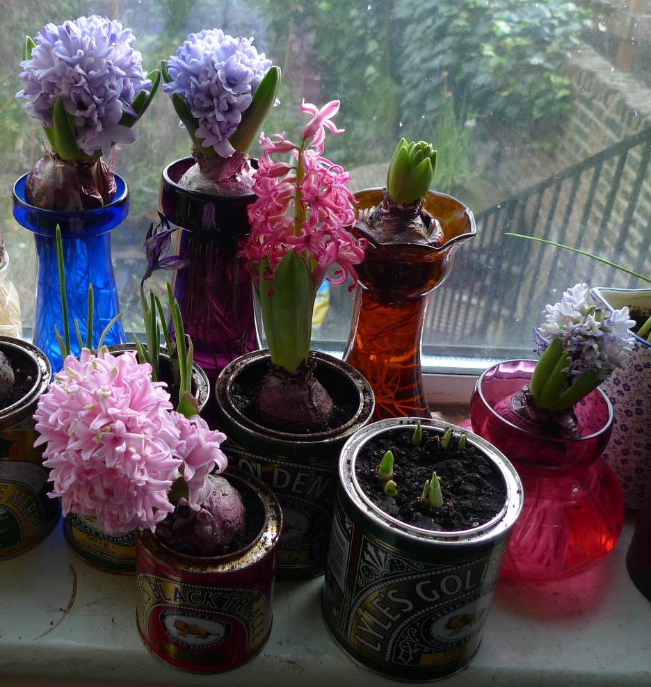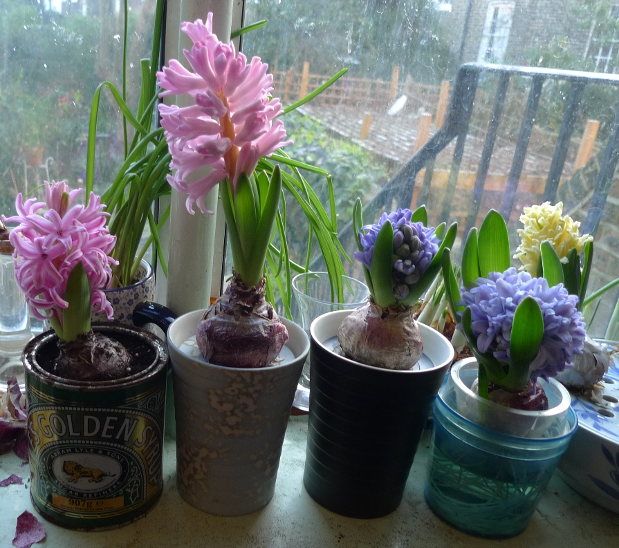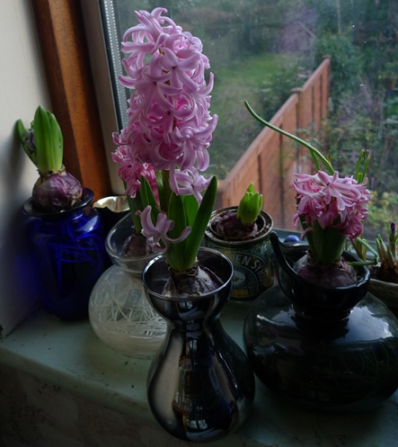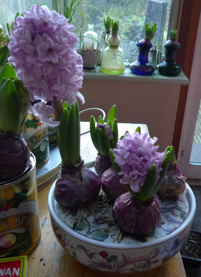 a few more hyacinths, some blooming, some still in bud