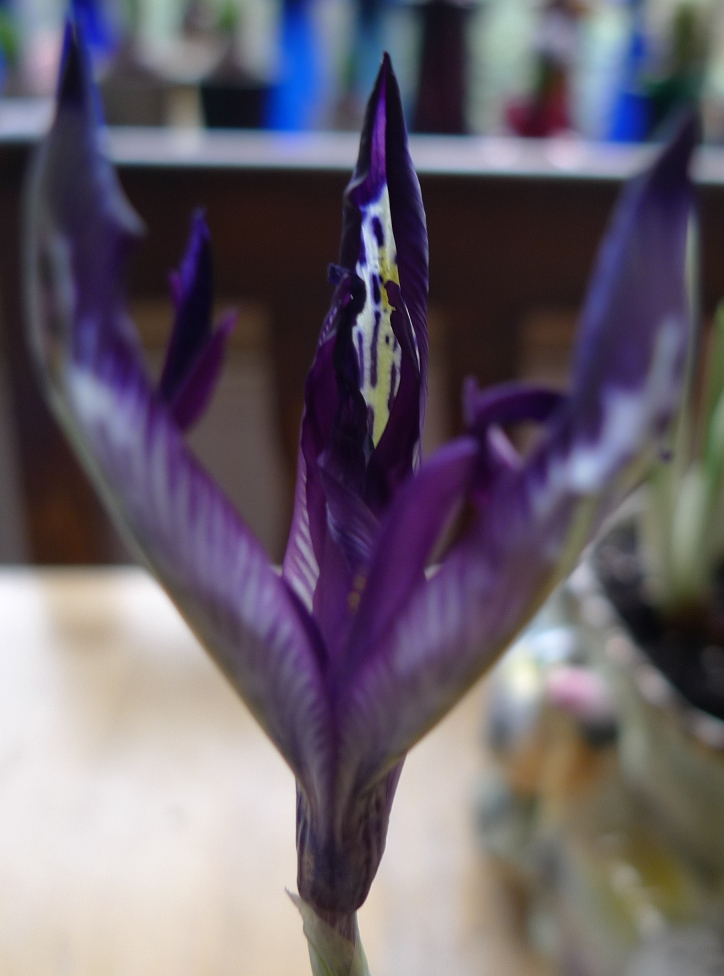 despite a couple of early flowers (one each in these containers) still waiting for more iris reticulata blooms