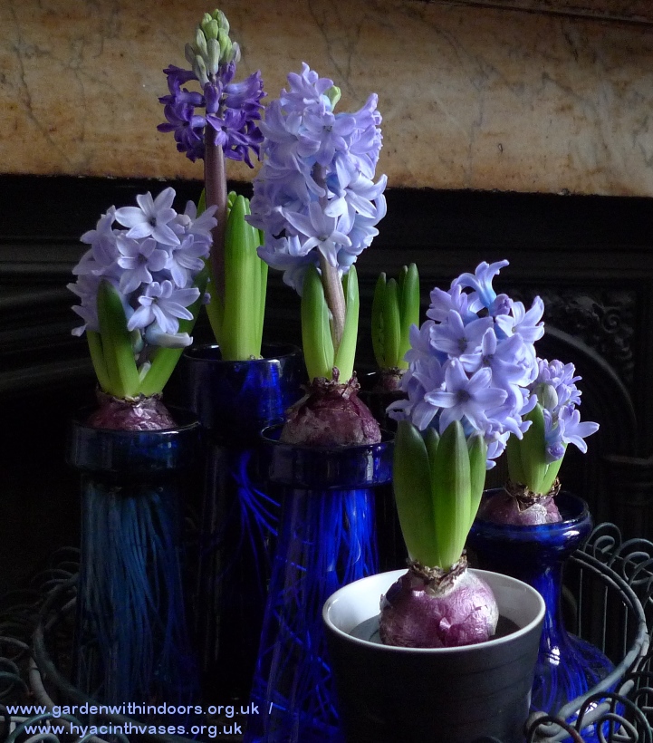 Delft Blue hyacinths, Blue Sapphire hyacinth back left