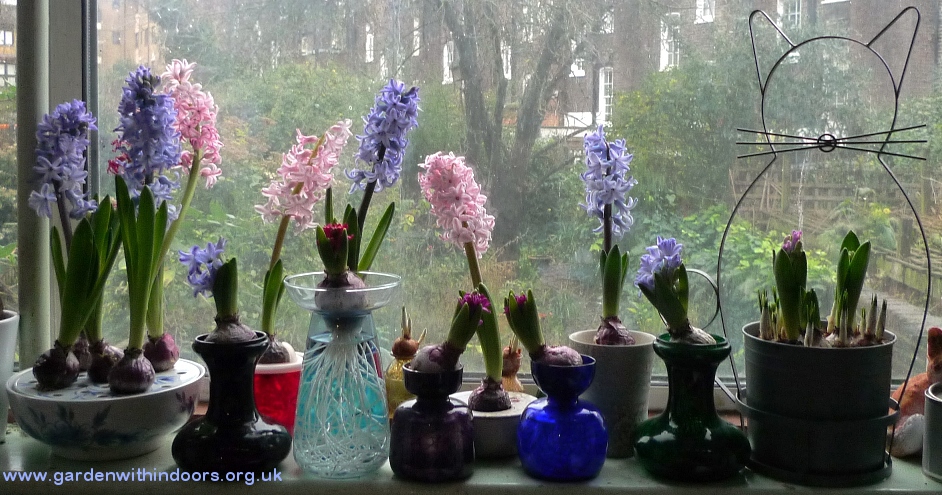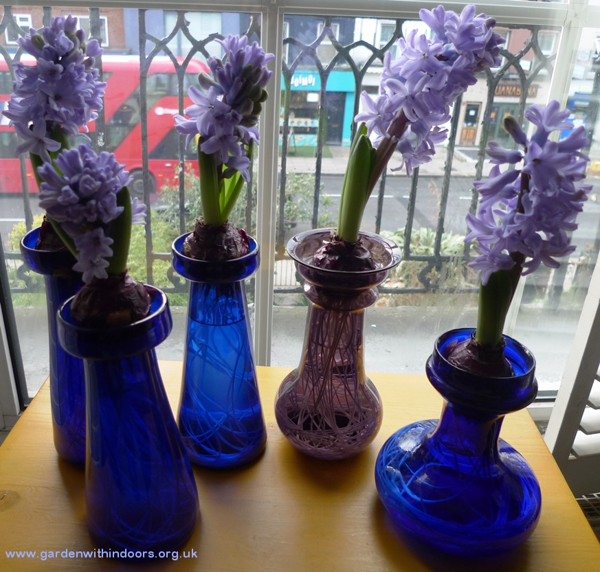 these were the hyacinths a few days before the photos above, 2 City of Bradford on the left, Delft Blue on the right