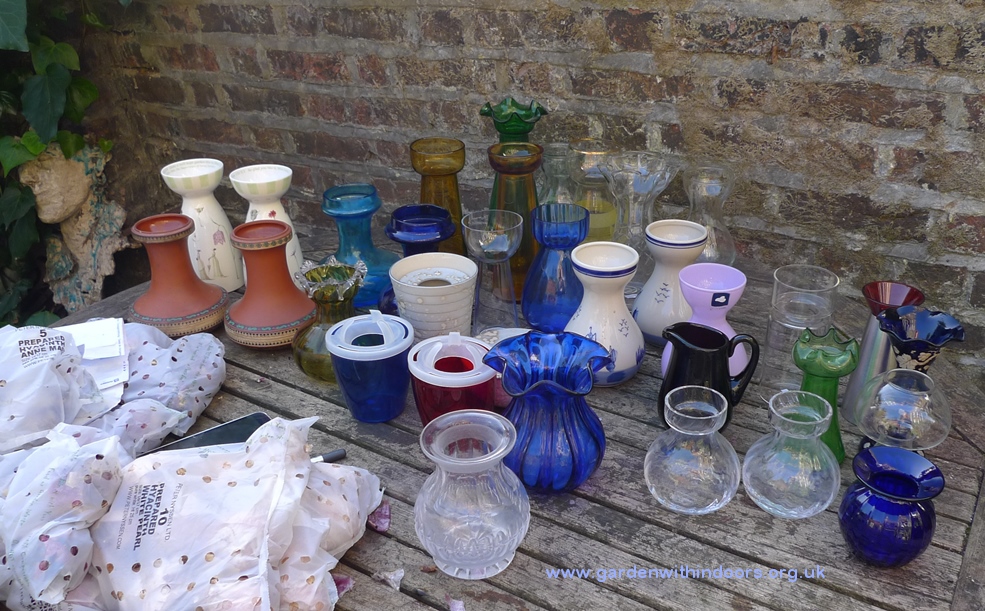 After the bulbs, one needs some vases to put them in. I like a range of vases of all styles. On the right (and the terracotta ones on the left) are some of my Victorian vases.